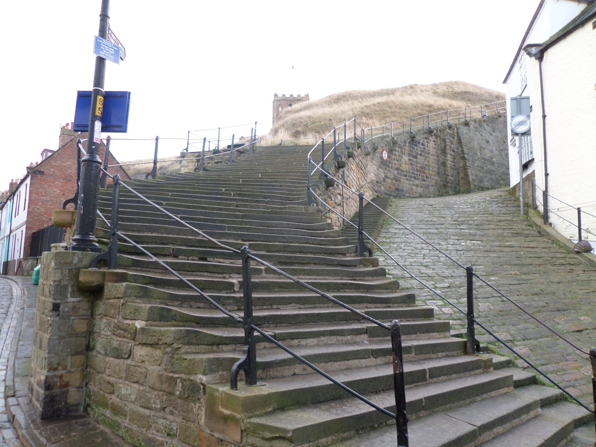 These are pictures of the the steps to Whitby Abbey and the Abbey itself destroyed by Henry VIII and featured in “Dracula” by Bram Stoker.