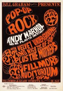 Poster for The Exploding Plastic Inevitable. I like the bit that says Nico “Pop Girl of 66”! Doesn’t quite fit the ominous ballads she comes out with!